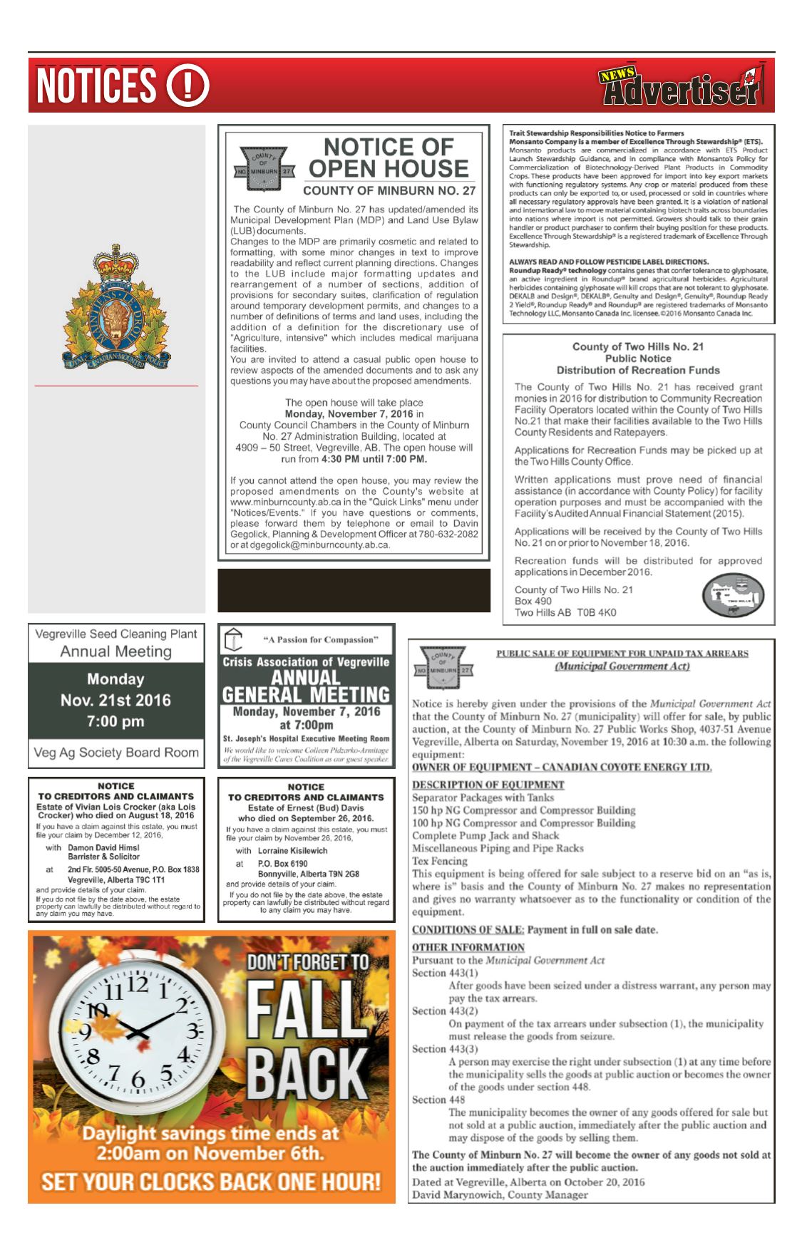 mately 11:30 a.m., Two Hills RCMP