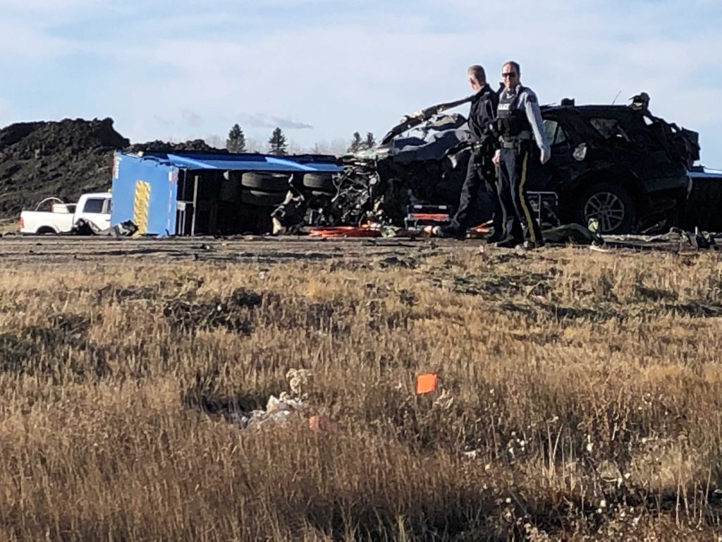 The 59-year-old male driver of the SUV from Camrose, Alberta was pronounced deceased at the scene. The driver of the semi-tractor was not injured.