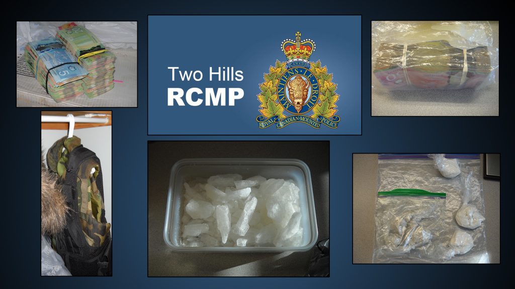 This arrest occurred as a result of an ongoing drug trafficking investigation affecting Minburn County, Two Hills County, Saddle Lake First Nation, and St. Paul County. During the search of the vehicle, police located and seized what is believed to be cocaine and methamphetamine.